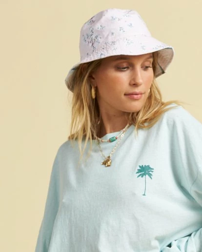 A sustainable staple for long beach days, the Billabong Party On keeps the (beach) party going with laid-back function. Part of the Billabong x Salty Blonde Collection, the striped bucket hat is made from eco-friendly organic cotton canvas, adding a metal logo charm.