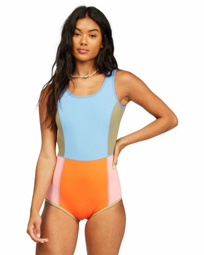 Say hello to your new favorite surf and saltwater essential. Delivering two amazing looks in one sleek little package, choose between retro color-blocking or paradise palms in the Seaker Reversible One Piece Swim. This sleeveless suit is made from stretchy and eco-conscious Superflex Recycler, built with strategically placed seams, high-end materials, and advanced construction techniques. Silicon Stretch interior lining adds incredible strength and flexibility without adding bulk. Details include zipperless entry and reinforced flatlock seams.