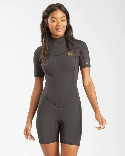 Delivering on performance, style and value, the 2mm Synergy Short Sleeve Springsuit for women is made from premium Recycled Superflex neoprene, a lightweight foam made partially from recycled car tires and neoprene scraps. Cut with flattering seams and optional colorblocked panels, the womenβs wetsuit is built with comfortable and durable flatlock stitching and a full length back zip for easy on and off.