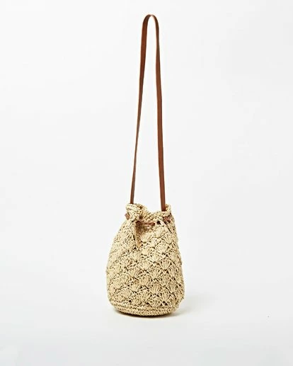 A cross body born under the tropical sun, the Wake Up carries a beachy, bohemian feel everywhere it goes. A small straw bucket bag, the Wake Up is trimmed with vegan friendly at the strap and cinch, adding on tassels, an interior lining and exterior logo badge.