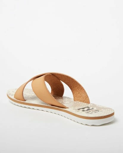 Take a walk on the wild side with this snake print slide sandal. Standing out with a snake print footbed, the vegan friendly slide sandal features criss-cross straps and a logo print at the heel.