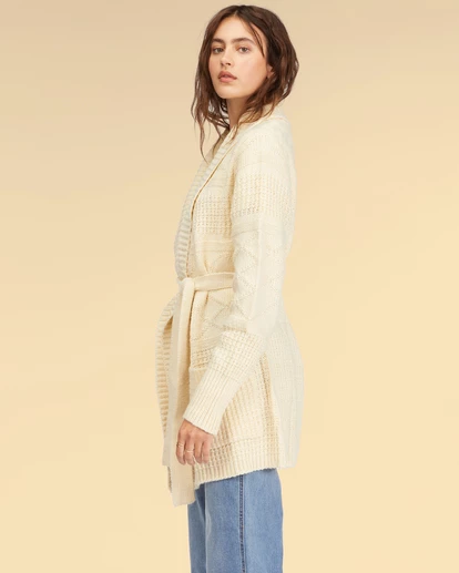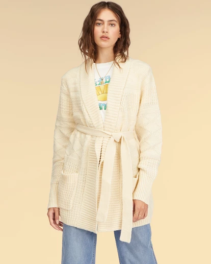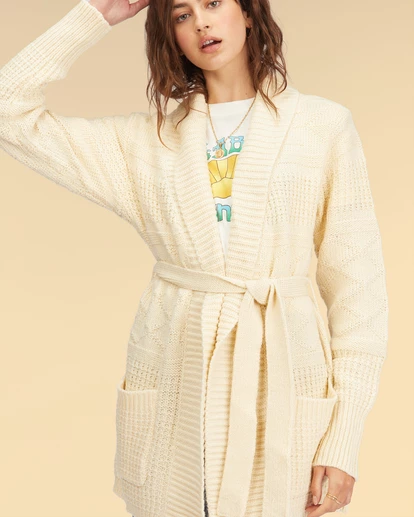 Home on the range vibes, but keep it salty. The perfect layer for sunset saddle rides or bonfires at the beach, the Wrangled Up Sweater is an open front grandpa cardigan that comes with a belted waist to pull it all together. An added bonus? This soft and cozy essential is made with a blend of recycled materials, giving new life to scrap fibers collected during the knitting process which would otherwise be wasted.