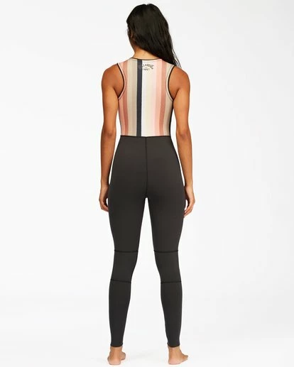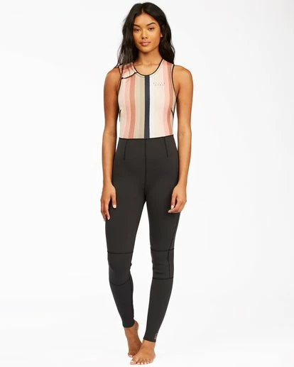 Free your arms and your spirit with a Long John style wetsuit for women. Part of the Billabong Eco Surf Capsule Collection, the all-black Long Jane womenβs wetsuit brings together modern functionality and the cleanest of vintage lines, thanks to eco minded construction. Made from 1mm premium Recycled Superlight neoprene, a lightweight foam made partially from recycled car tires and neoprene scraps, topped with 100% recycled Superflex jersey, creating flexibility alongside sustainability. The Sol Sistah Long Jane is finished with non-toxic water based adhesive and flatlock stitch construction for comfort and durability. A back zip entry keeps clean lines while allowing for an easy on/off.